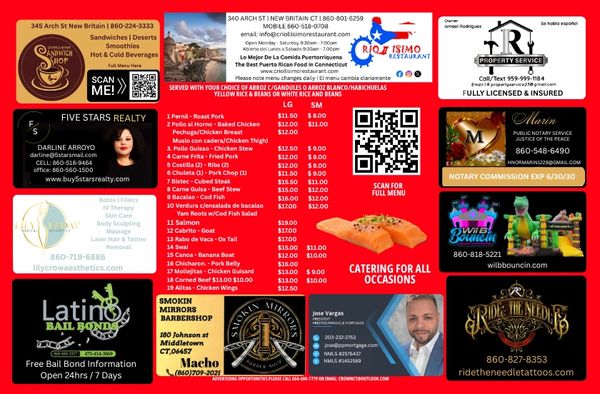 Ads on the magnetic menus are inexpensive and are a great way for local businesses to both support a local restaurant and target local area residents with a medium that will be seen daily by 1,000's of potential new customers.